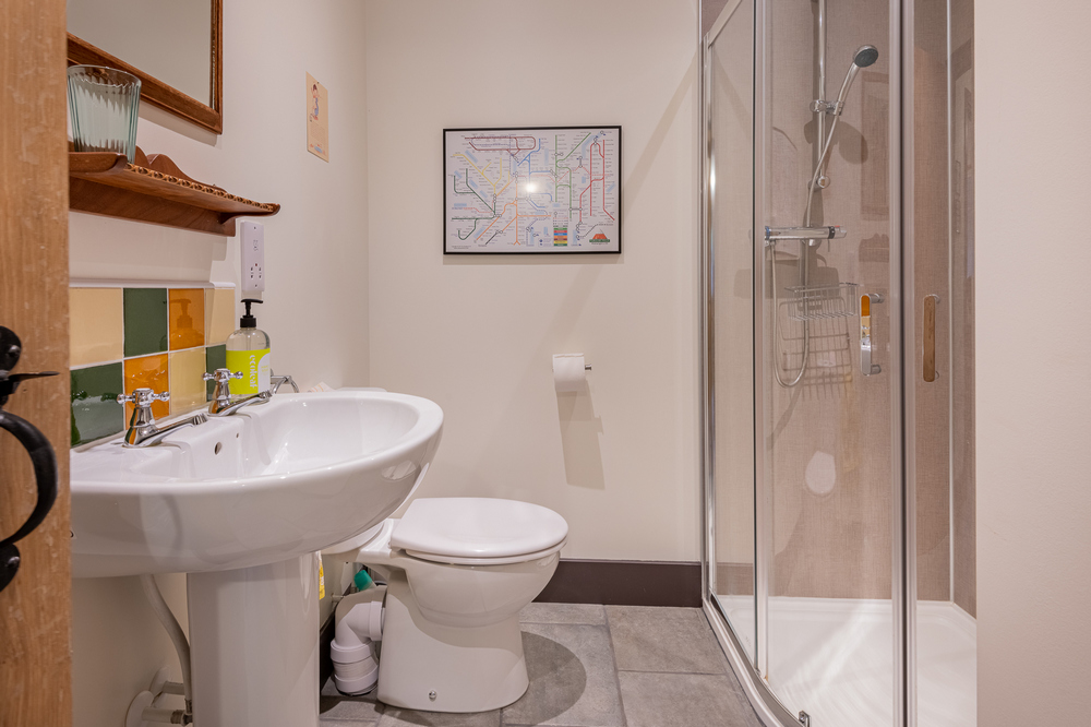 - A well-equipped kitchen with electric cooker, toaster, kettle and microwave plus dishwasher and fridge (with a small freezer). Dish cloths, tea towels, washing up brush, eco washing up liquid and eco dishwasher detergent are provided.